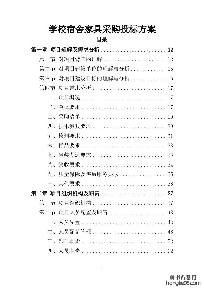 标题:(校园)学校宿舍家具采购投标方案400页
