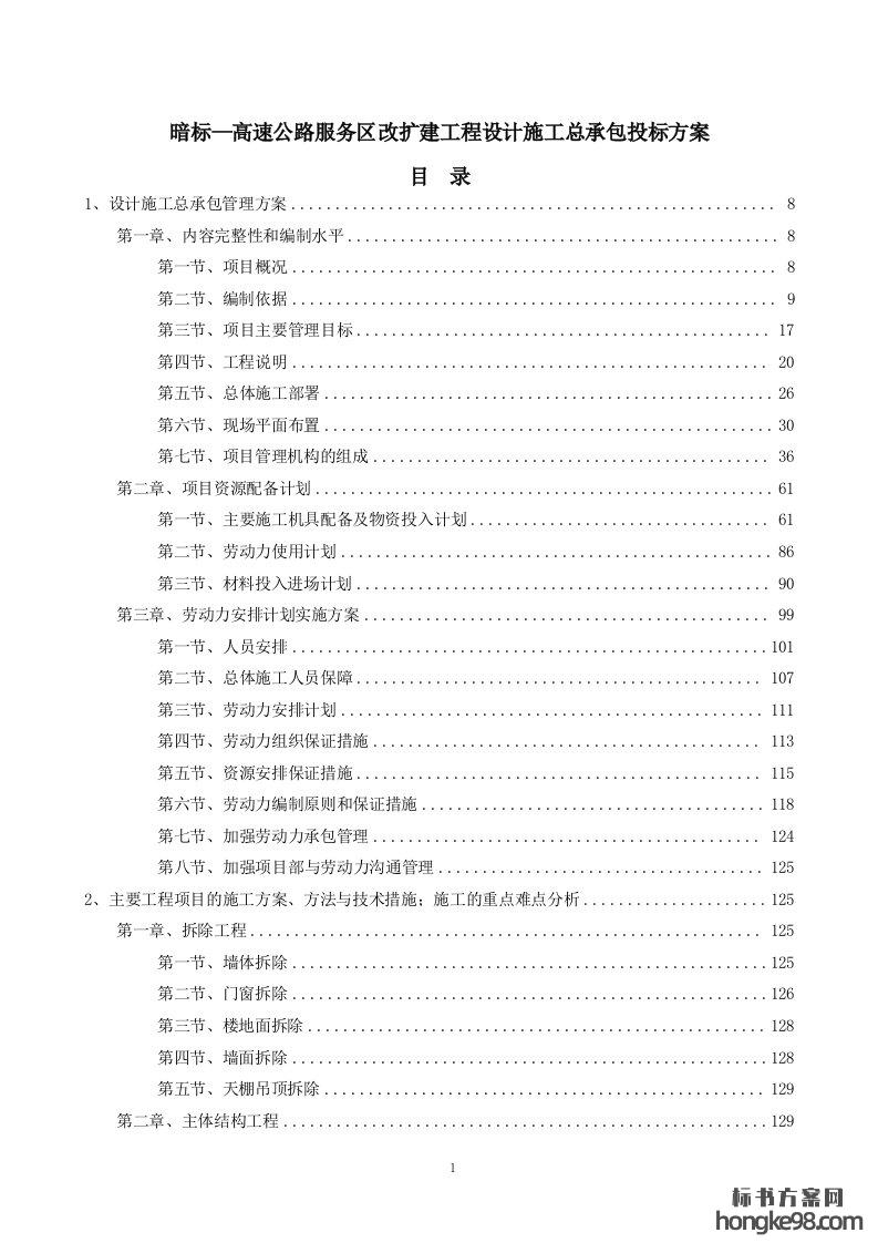 标题:高速公路服务区改扩建工程设计施工总承包投标方案(921页)