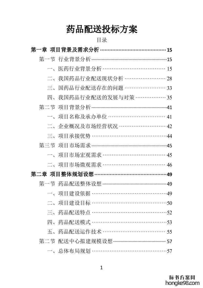 标题:药品物流配送投标方案370页