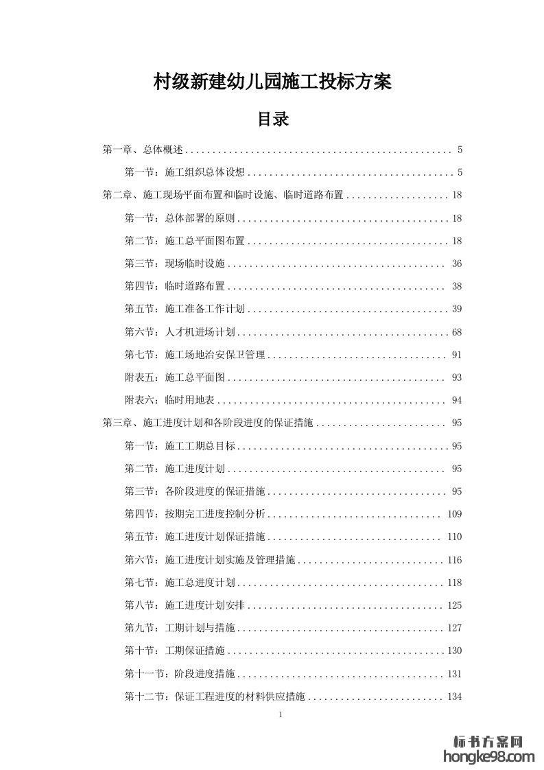 标题:村级新建幼儿园施工投标方案(960页)