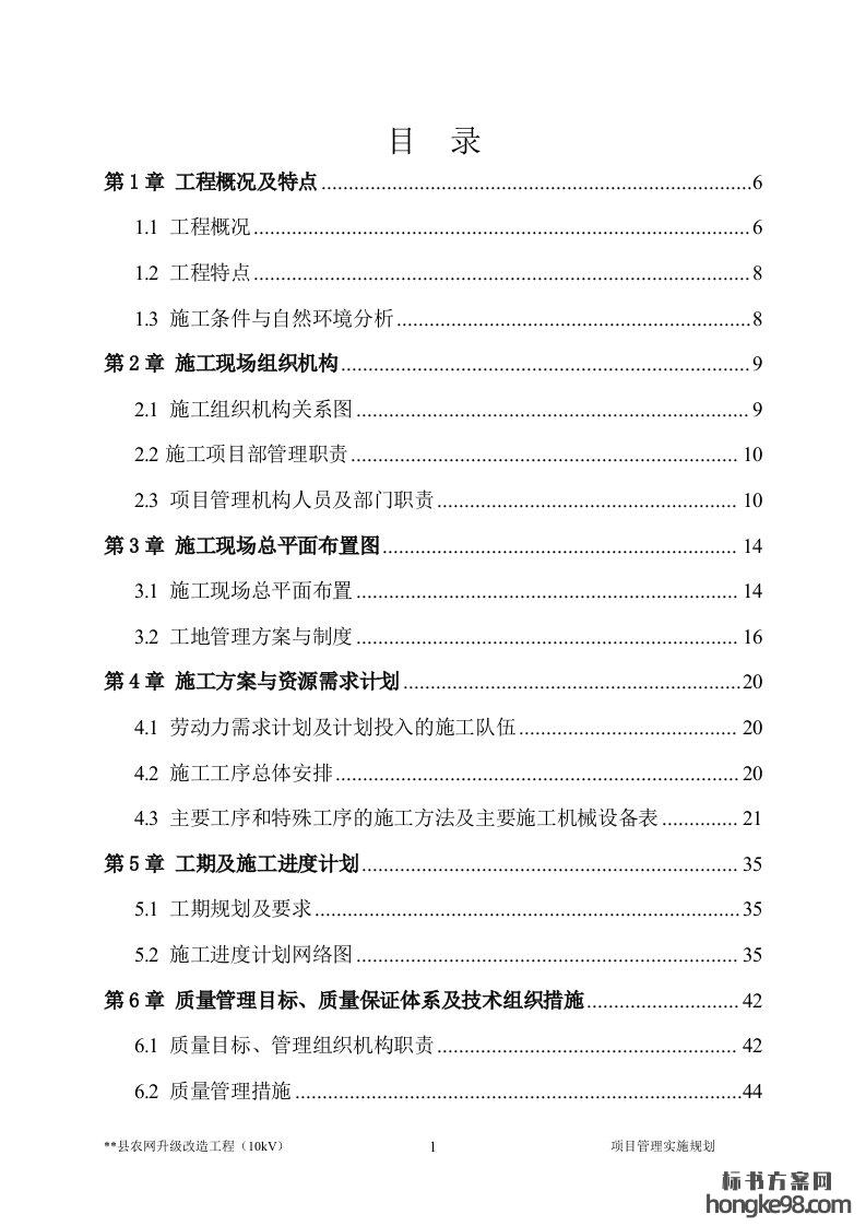 标题:配网工程施工组织设计(104页)