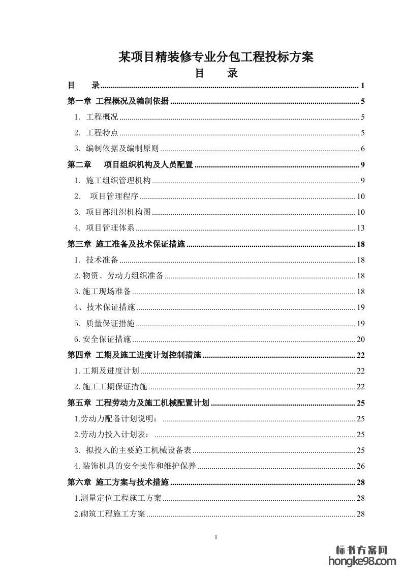 标题:某项目精装修专业分包工程标书投标方案(179页)