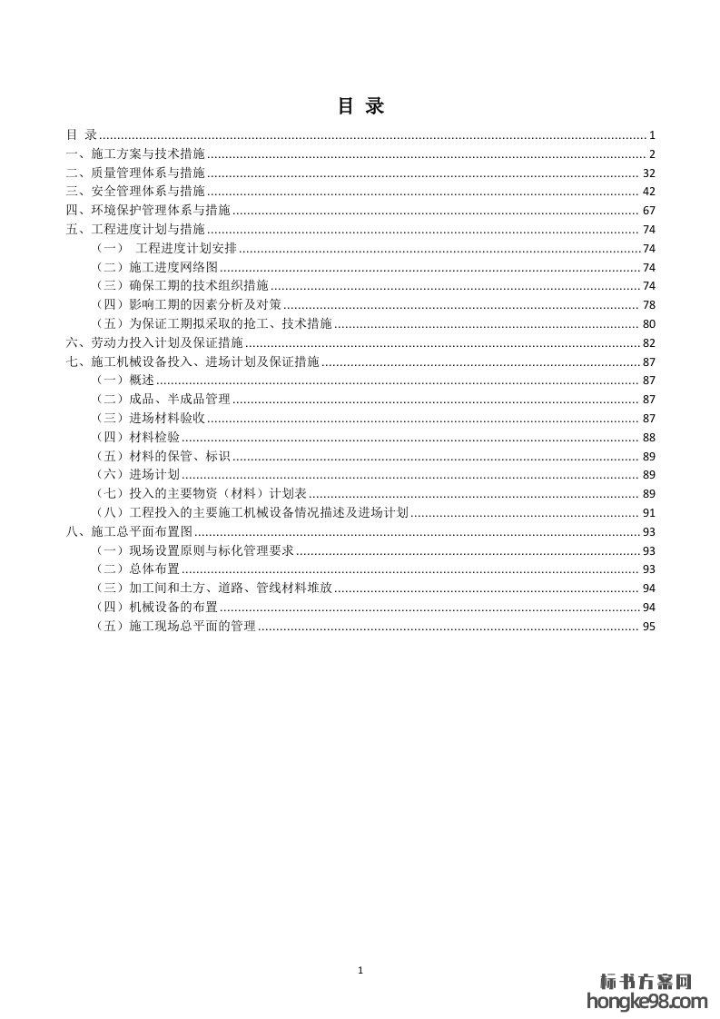 标题:某河道治理工程施工组织设计标书投标技术方案(119页)
