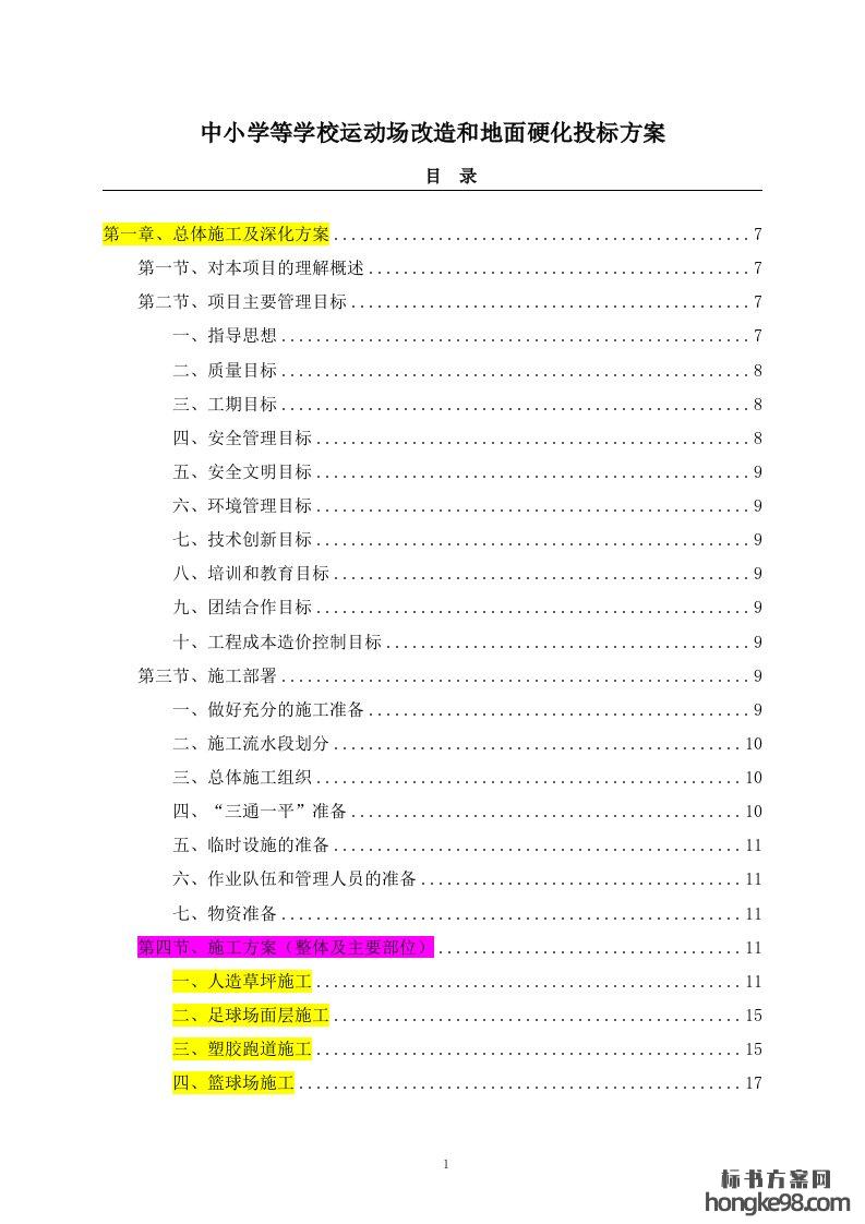 标题:中小学等学校(校园)操场运动场改造和地面硬化标书投标方案(423页)