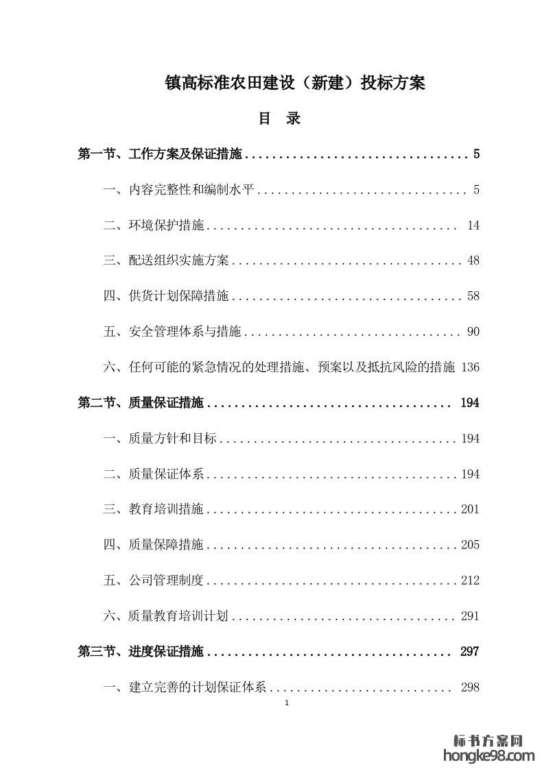 标题:镇高标准农田建设(新建)标书投标方案(619页)