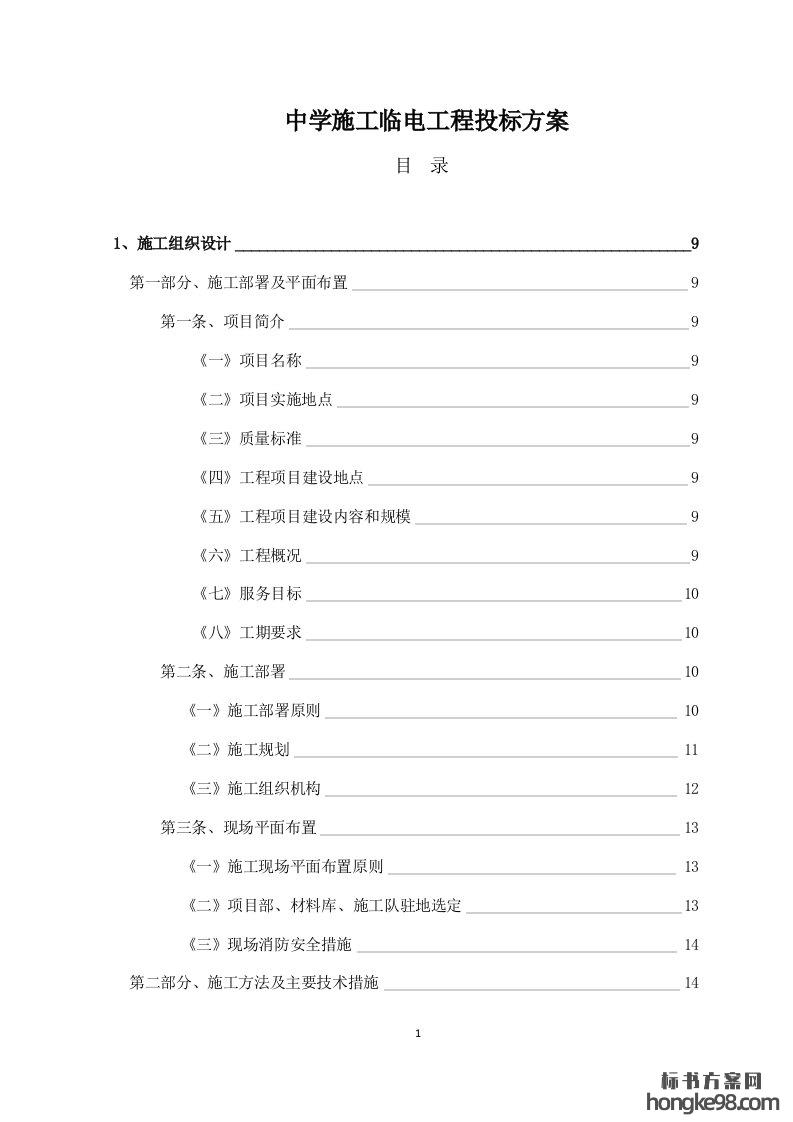 标题:某学校(校园)中学施工临电工程标书投标方案(188页)