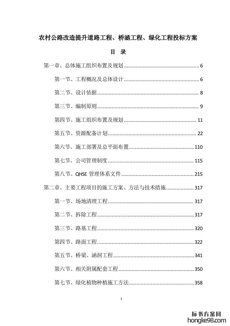 标题:农村公路改造提升道路工程、桥涵工程、绿化工程标书投标方案(861页)