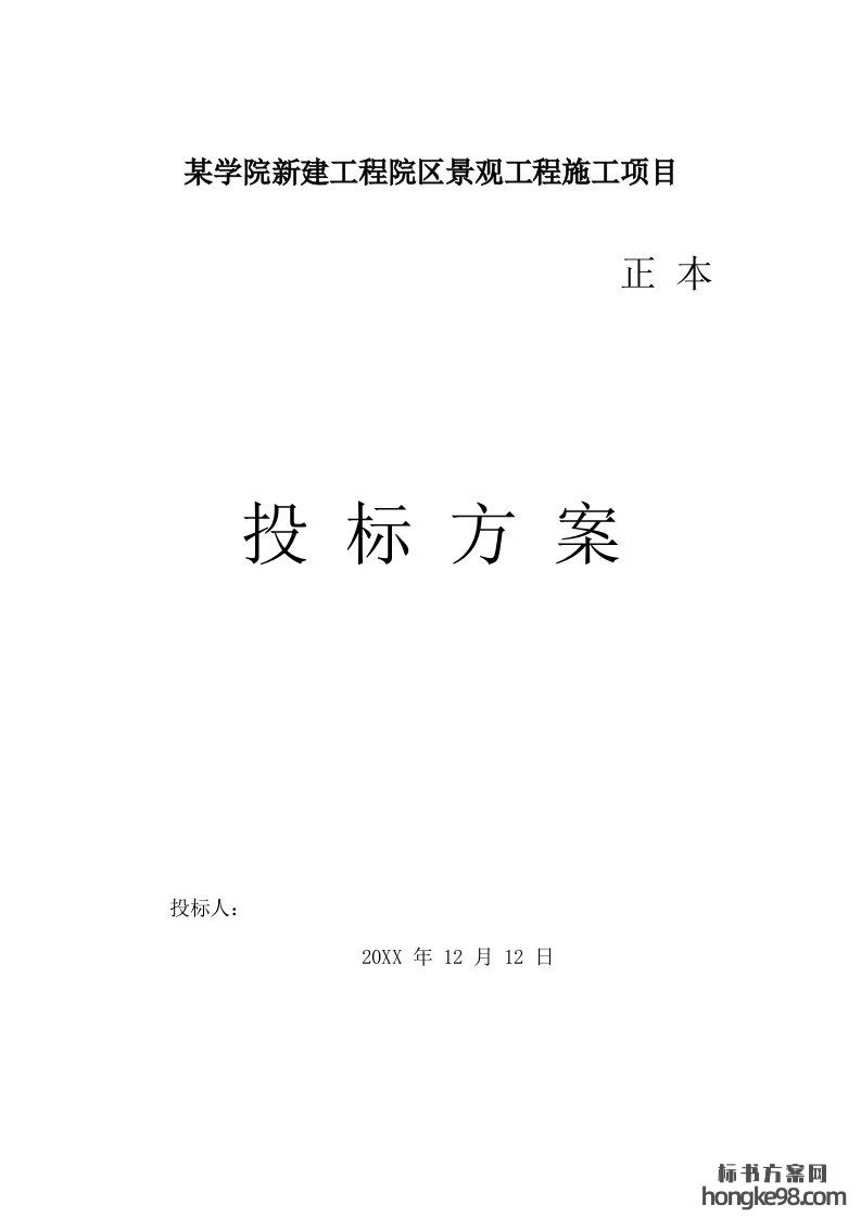 标题:某学院新建工程院区景观工程施工项目标书投标方案(107页)