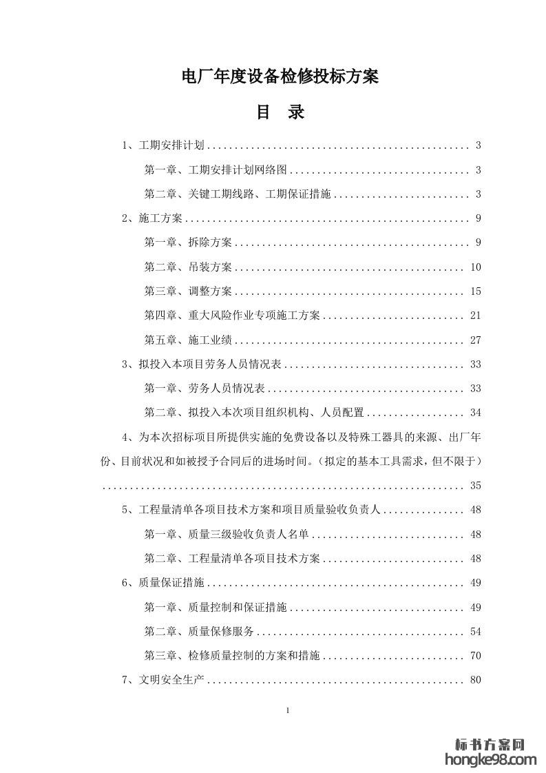 标题:电厂设备检修标书投标方案(137页)