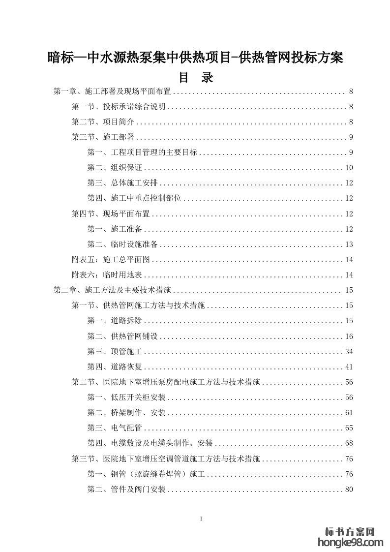 标题:中水源热泵集中供热项目-供热管网标书投标方案(353页)