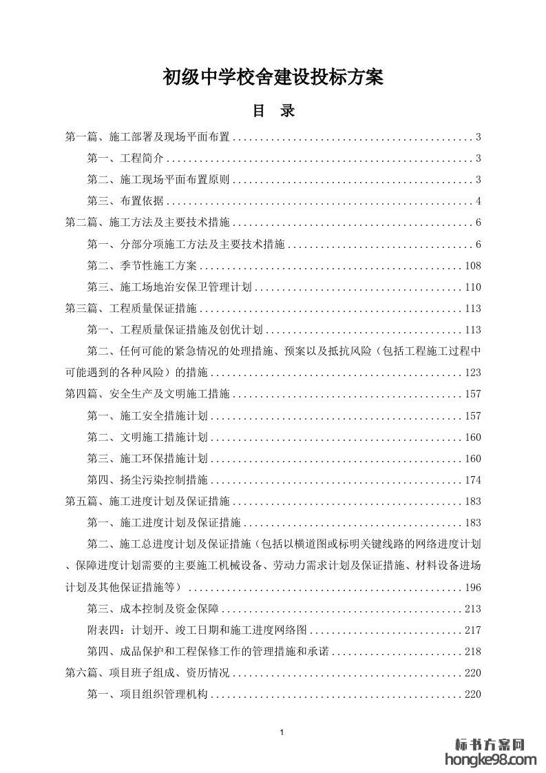 标题:初级中学(校园)校舍施工建设标书投标方案(237页)