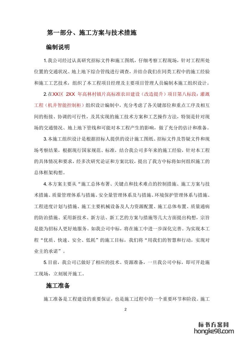 标题:高标准农田建设灌溉工程(机井智能控制柜)标书投标方案(140页)