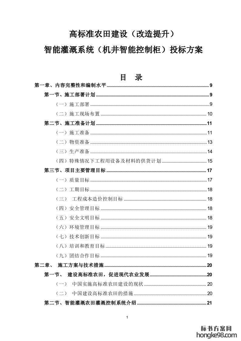 标题:高标准农田建设(改造提升)智能灌溉系统控制柜标书投标方案(373页)