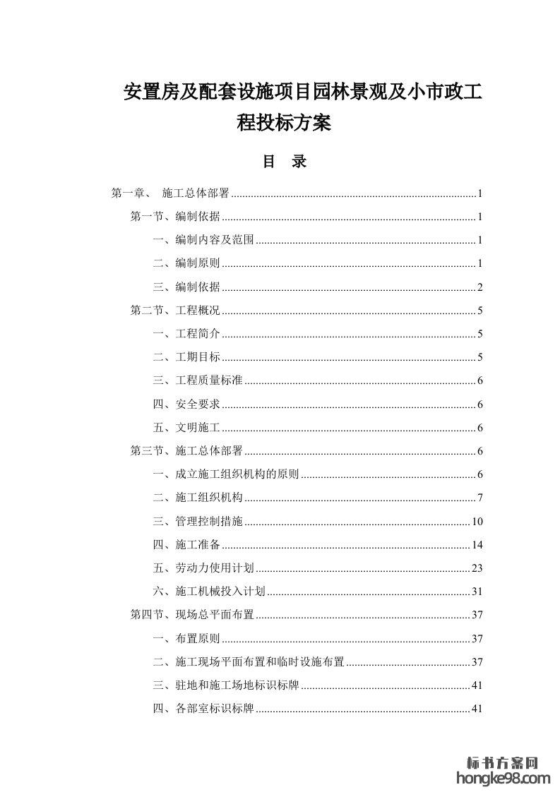 标题:安置房及配套设施项目园林景观及小市政工程标书投标方案(451页)