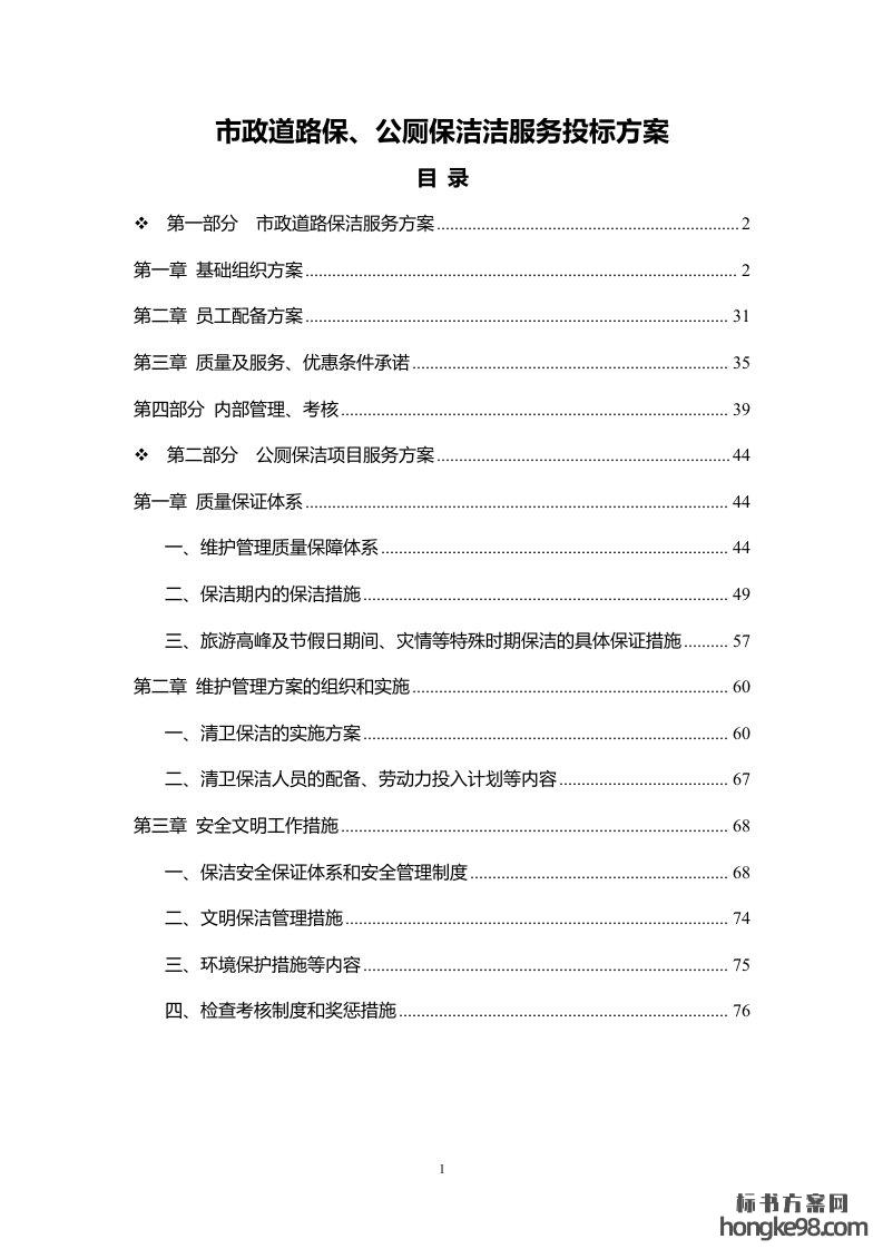 标题:市政道路保、公厕保洁洁服务标书投标方案(79页)