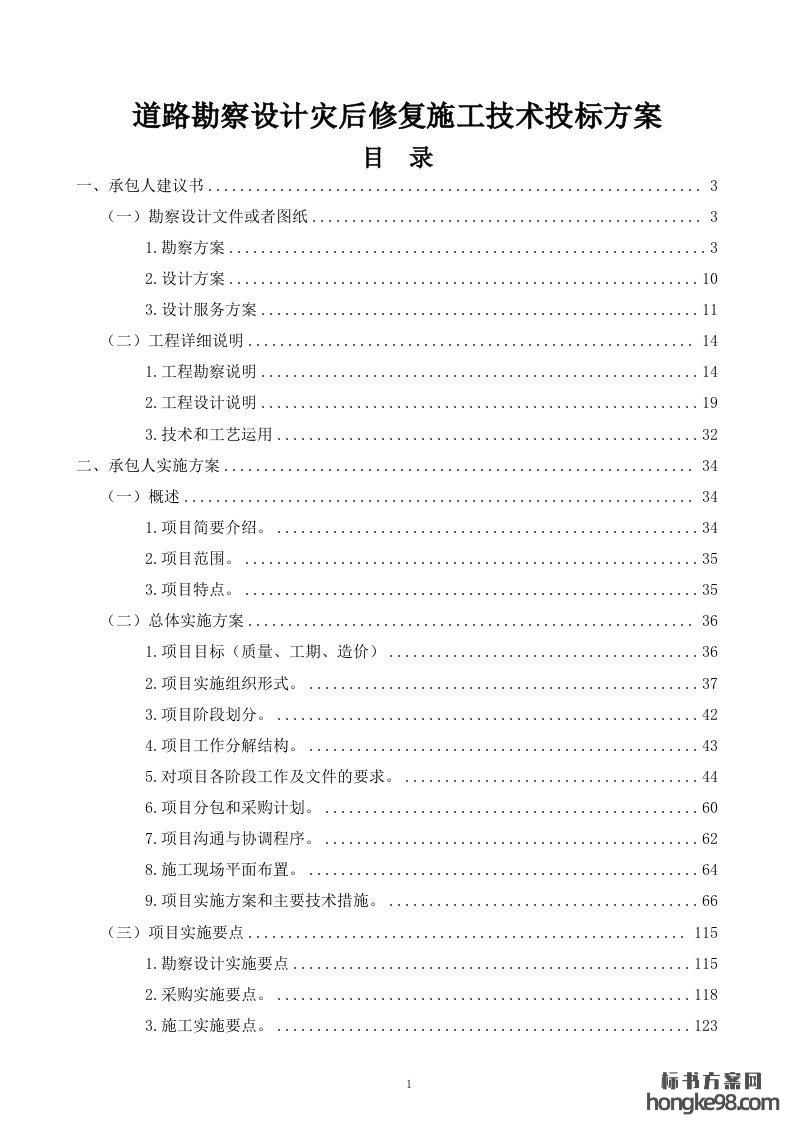 标题:道路勘察设计灾后修复施工技术标书投标方案(303页)