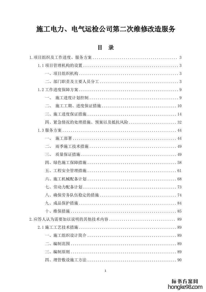 标题:施工电力、电气运检公司第二次维修改造服务标书投标方案(153页)