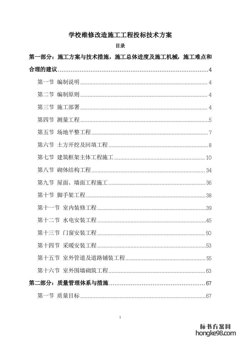 标题:学校(校园)维修改造施工工程标书投标技术方案(129页)