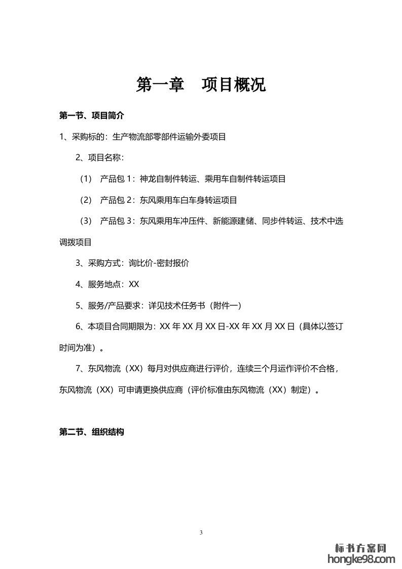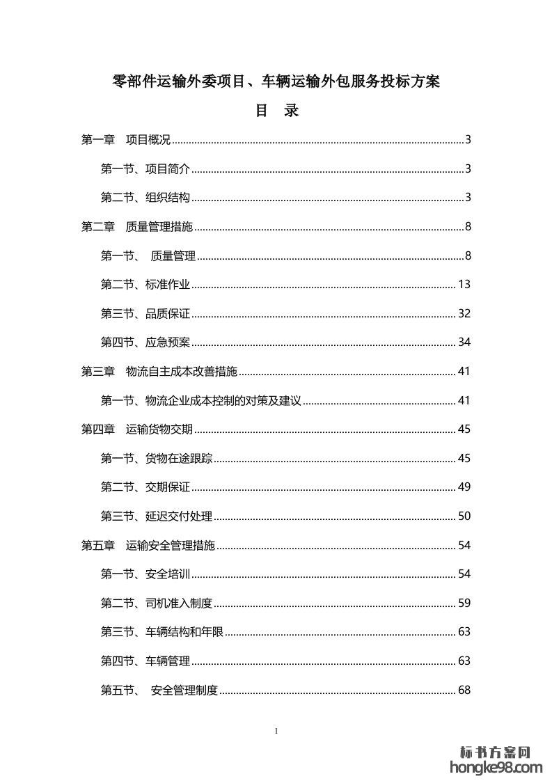标题:零部件运输外委项目、车辆运输外包服务标书投标方案(171页)