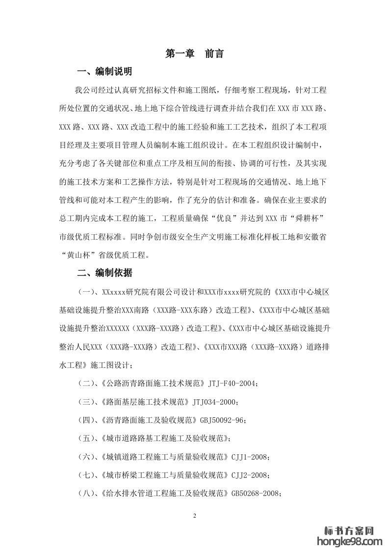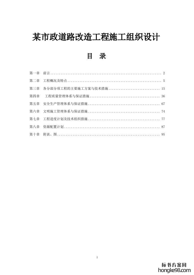 标题:某市政道路改造工程施工组织设计标书投标方案(114页)