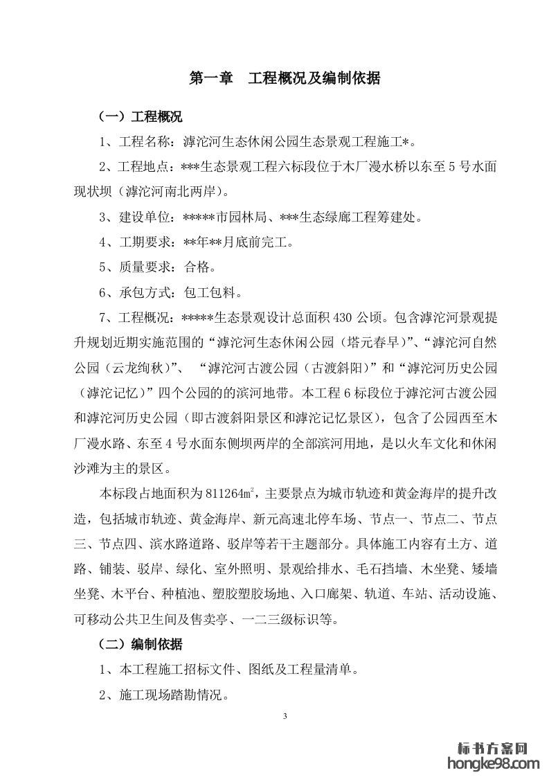 标题:河流生态休闲公园生态景观工程施工技术方案(305页)