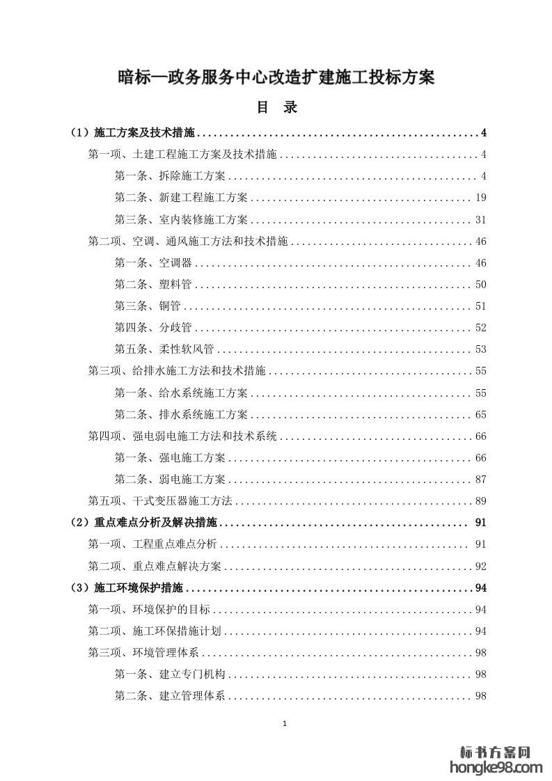 标题:政务服务中心改造扩建施工标书投标方案(179页)