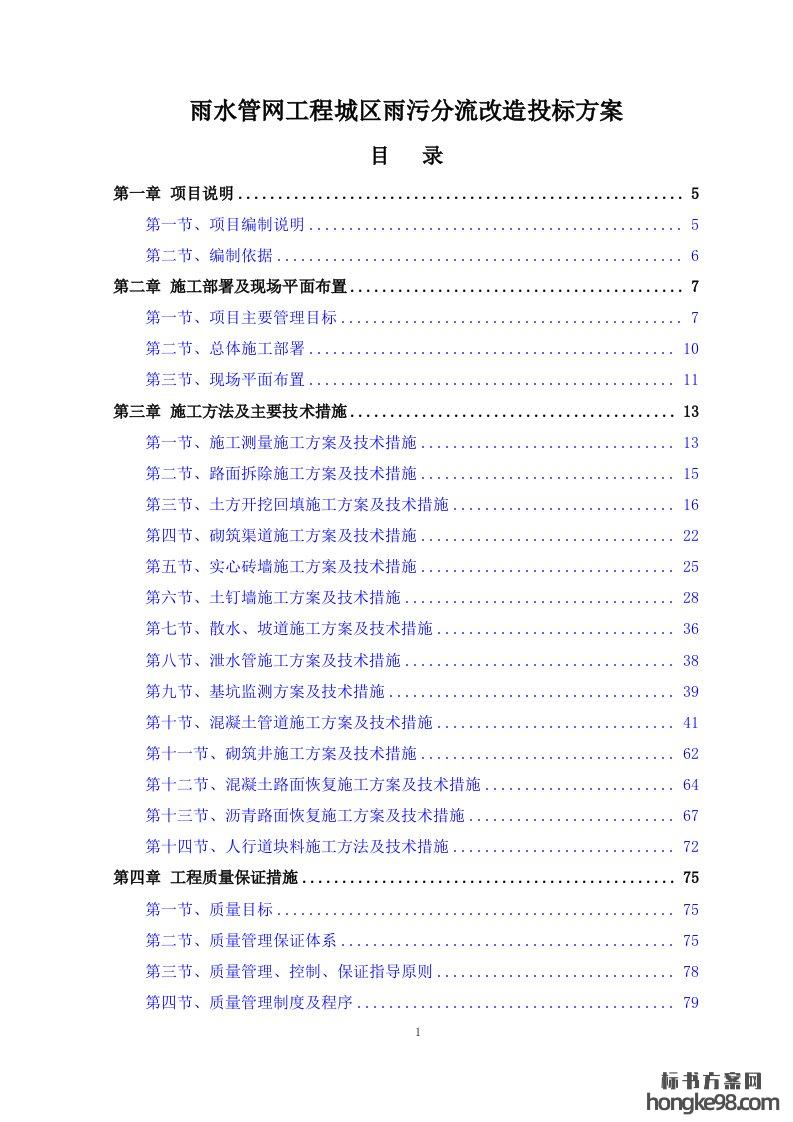 标题:雨水管网工程城区雨污分流改造标书投标方案(333页)
