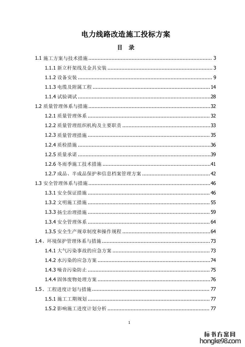 标题:电力线路改造施工标书投标方案(130页)