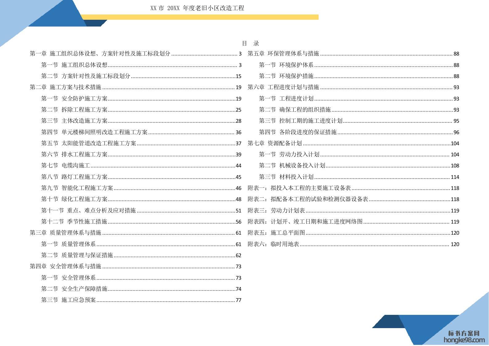 标题:老旧小区改造工程施工标书投标方案(122页)