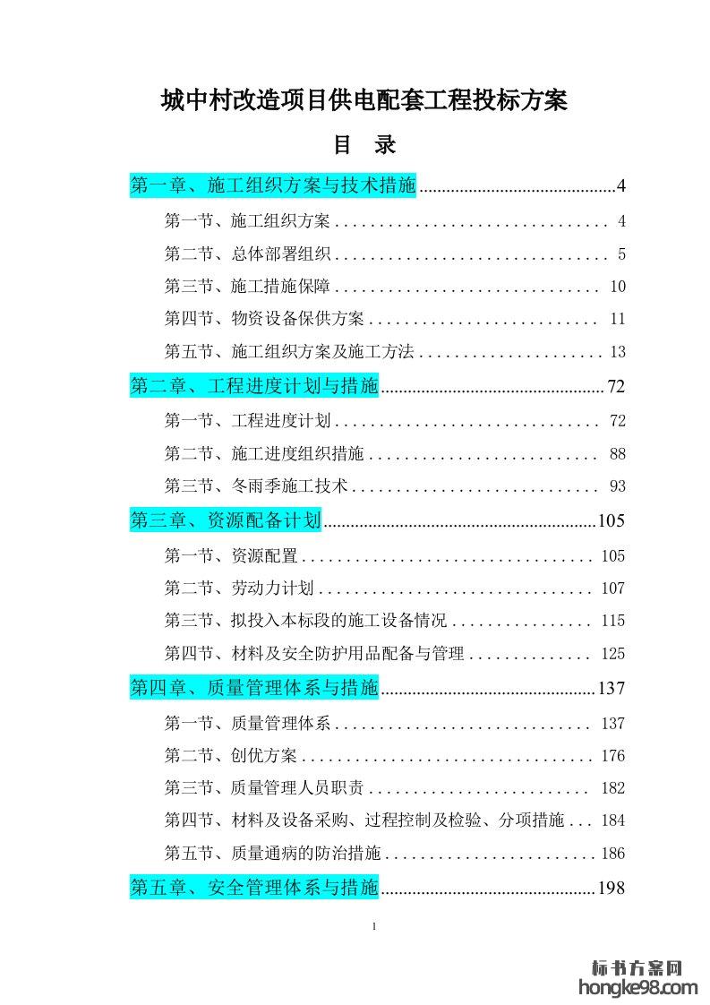标题:城中村改造项目供电配套工程标书投标方案(261页)