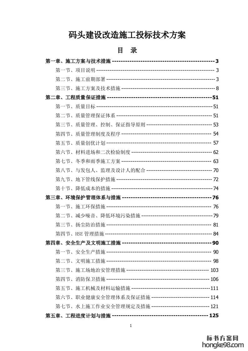 标题:码头建设改造施工标书投标技术方案(236页)