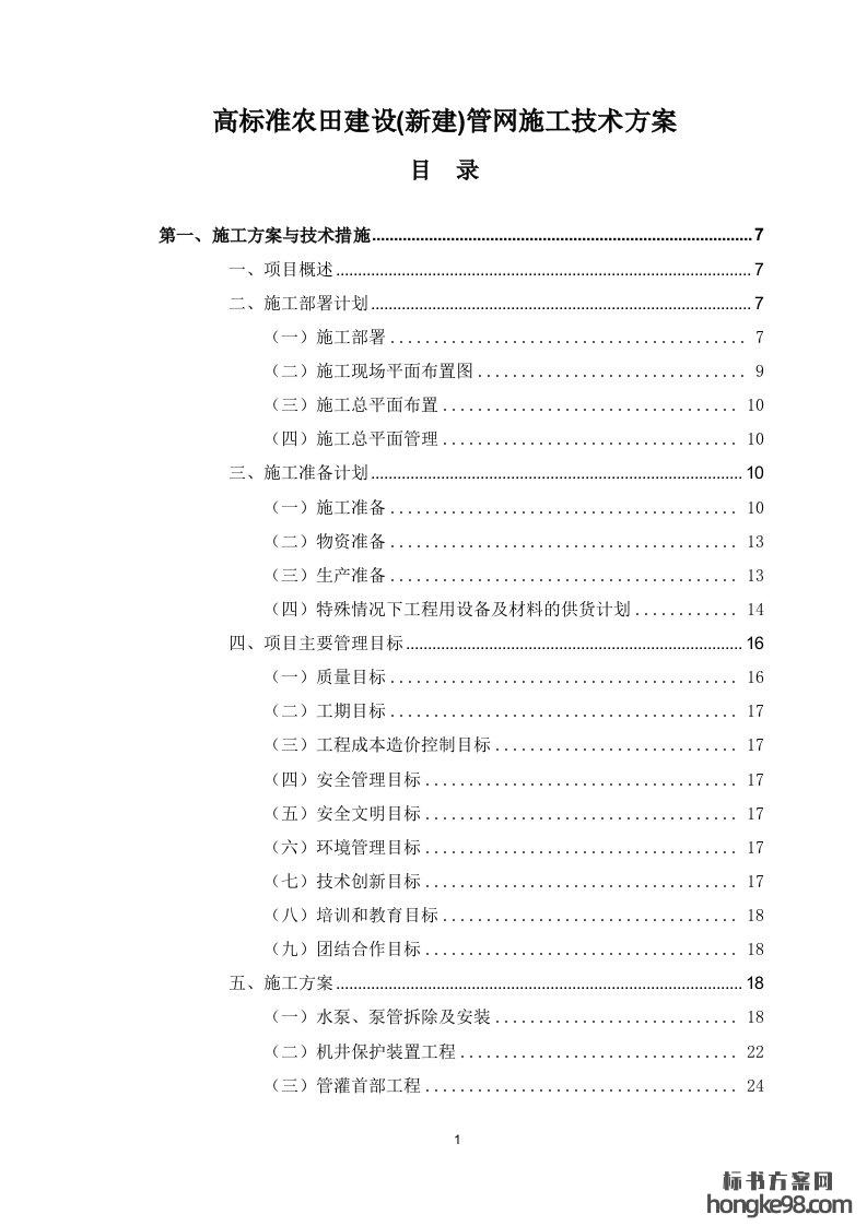 标题:高标准农田建设(新建)管网施工技术方案(280页)