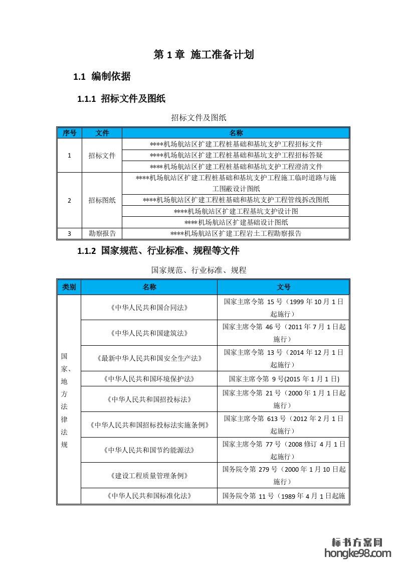 标题:机场航站区扩建工程桩基础和基坑支护工程技术标(标书投标方案)(452页)