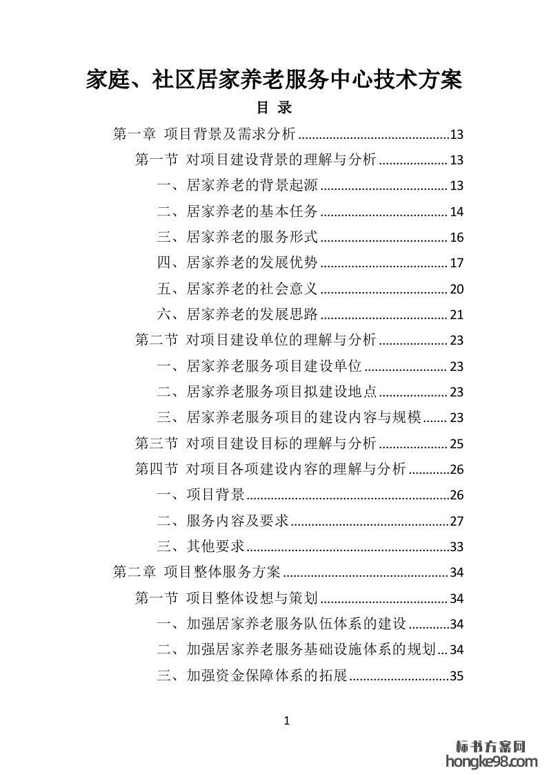 标题:家庭、社区居家养老服务中心技术方案(505页)