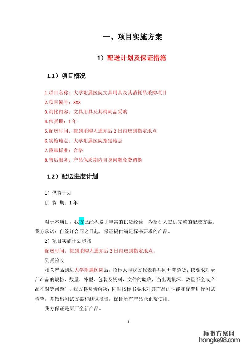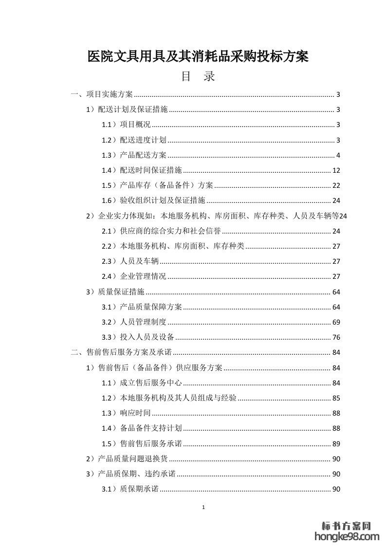 标题:医院文具用具及其消耗品采购标书投标方案(91页)