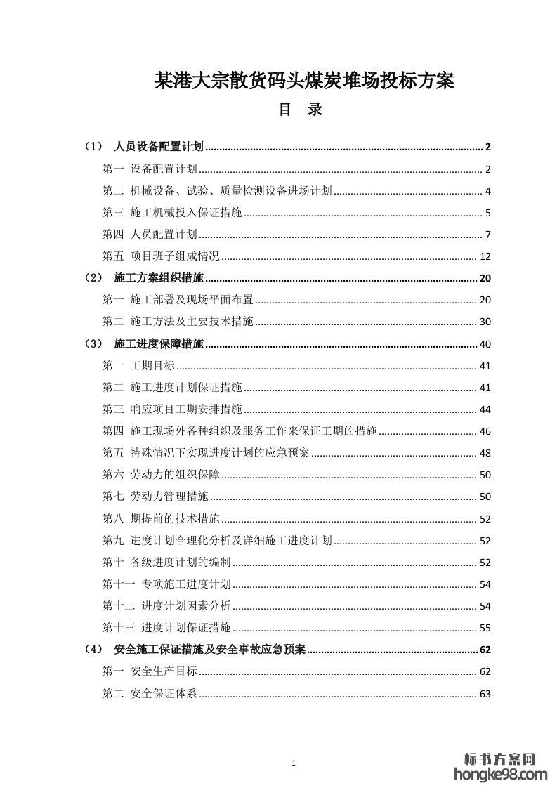 标题:某港大宗散货码头煤炭堆场标书投标方案(131页)