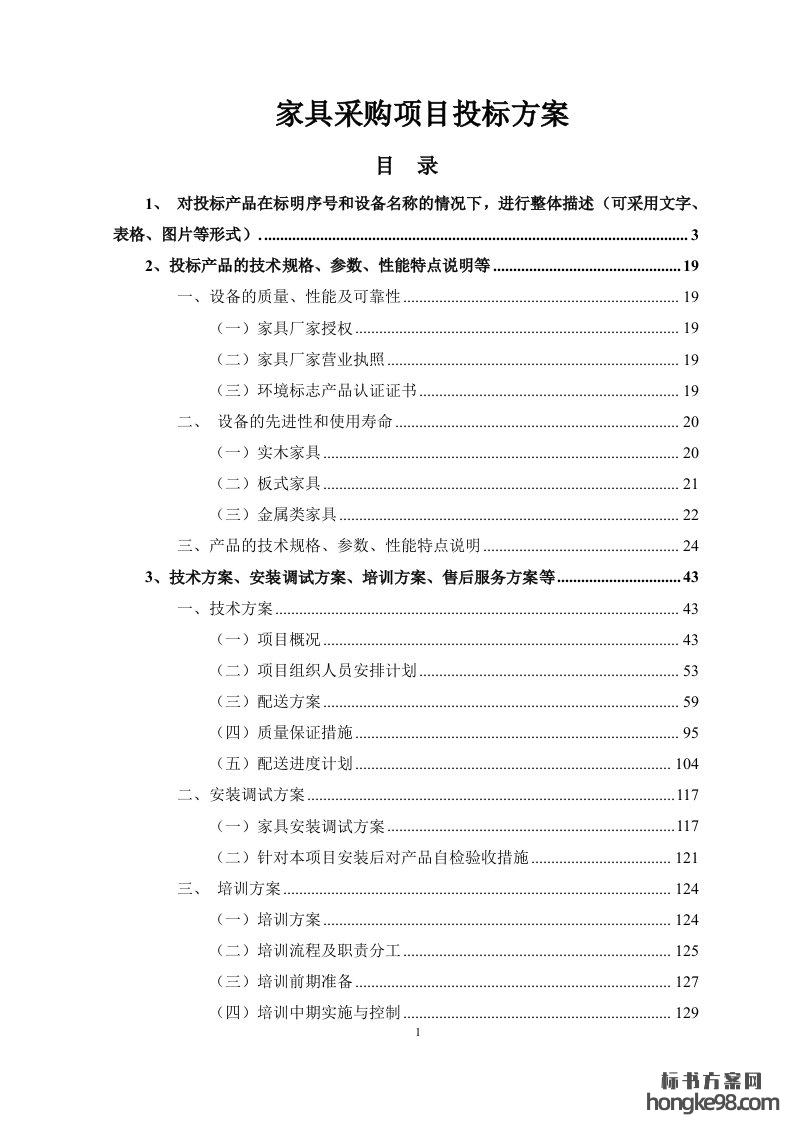 标题:家具采购项目标书投标方案(174页)