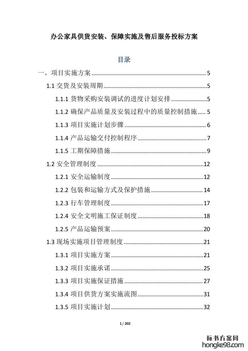 标题:办公家具供货安装、保障实施及售后服务标书投标方案(202页)