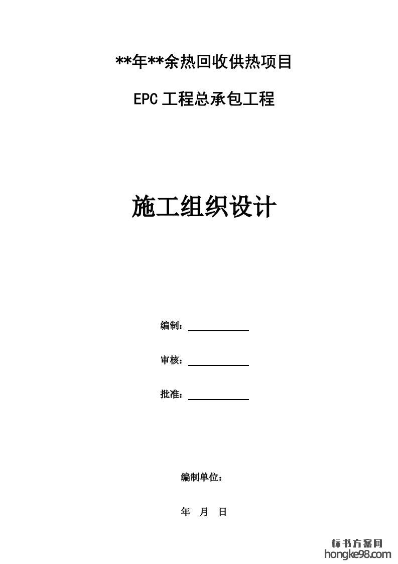 标题:余热回收供热项目EPC工程总承包工程施工组织设计(180页)