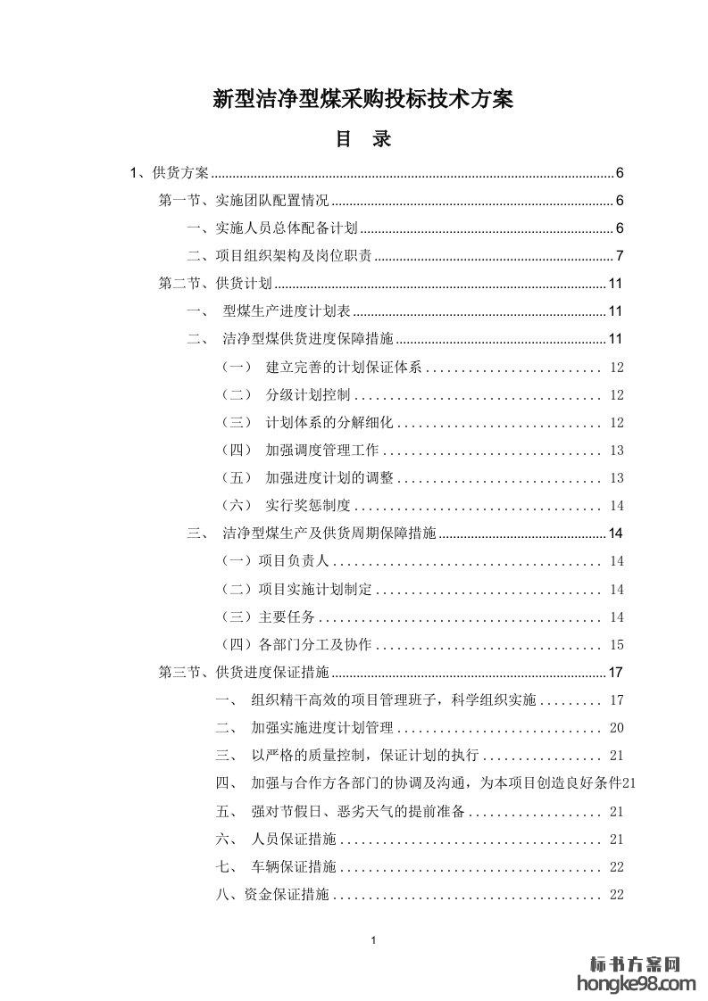 标题:新型洁净型煤炭采购标书投标技术方案(129页)
