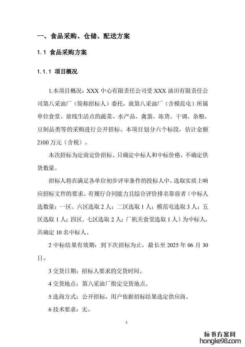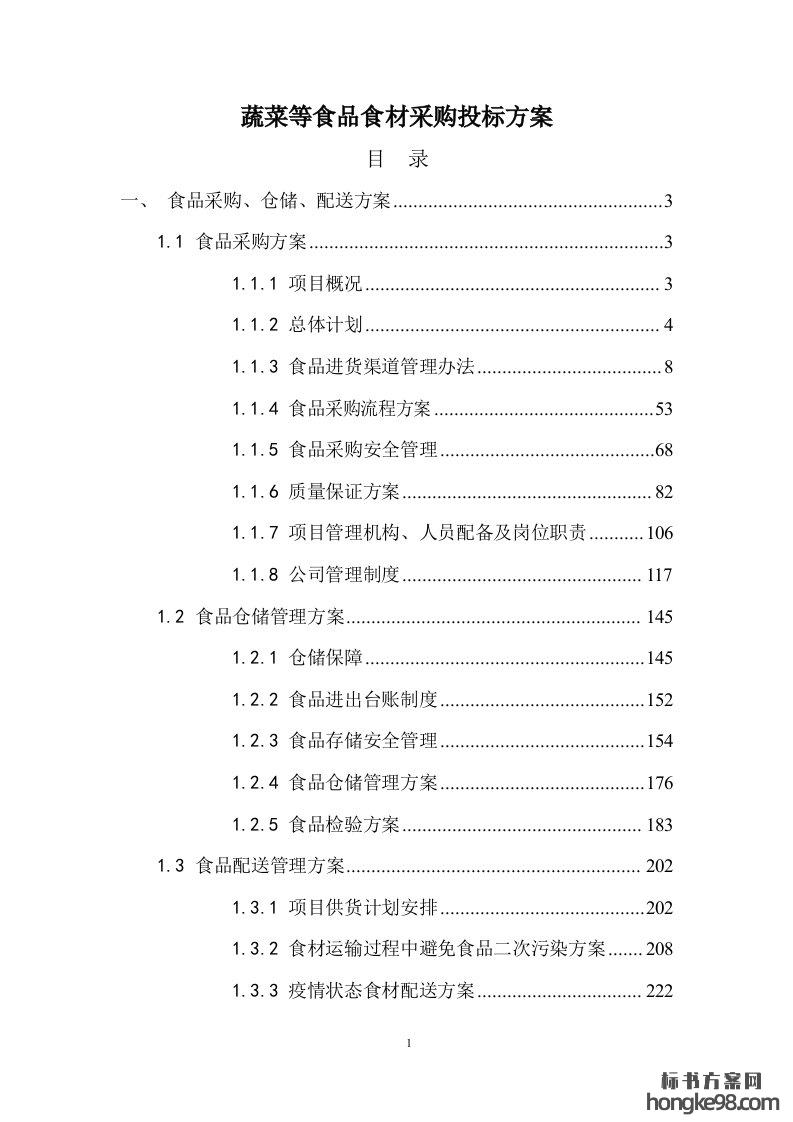 标题:蔬菜等食品食材采购标书投标方案(270页)
