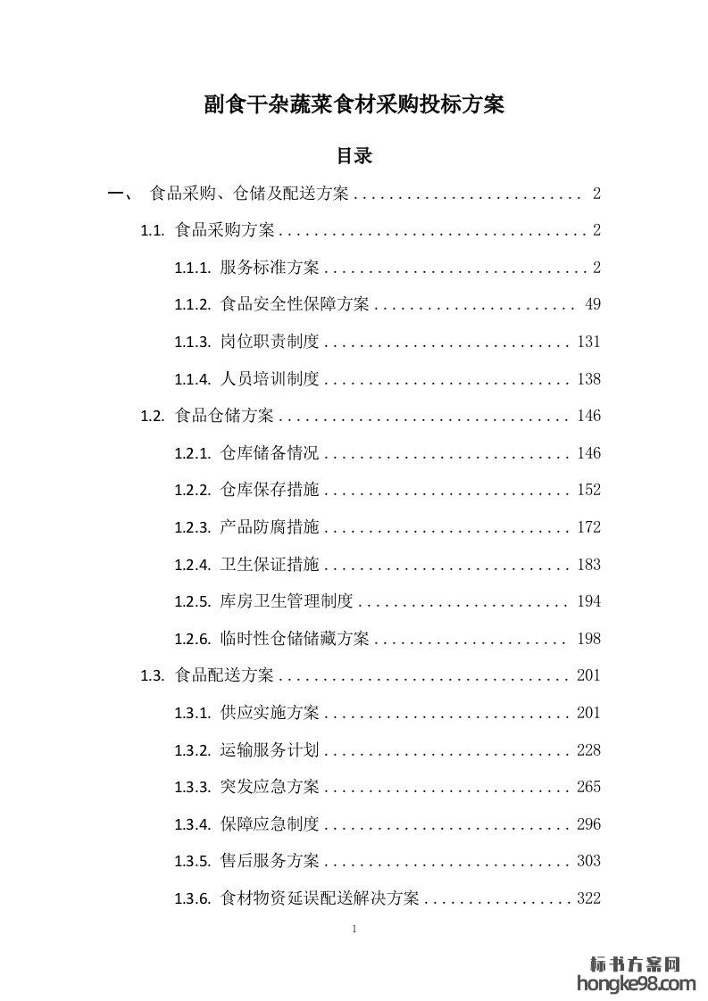 标题:副食干杂蔬菜食材采购标书投标方案(323页)