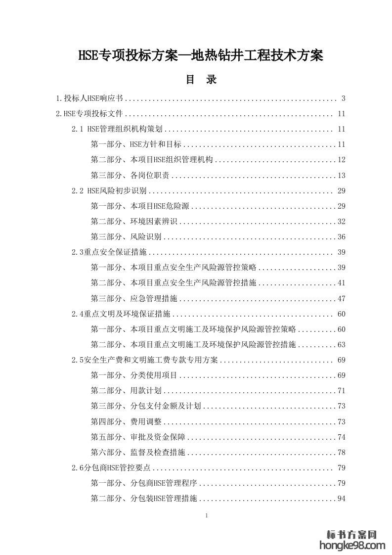 标题:HSE专项标书投标方案地热钻井工程技术方案(104页)