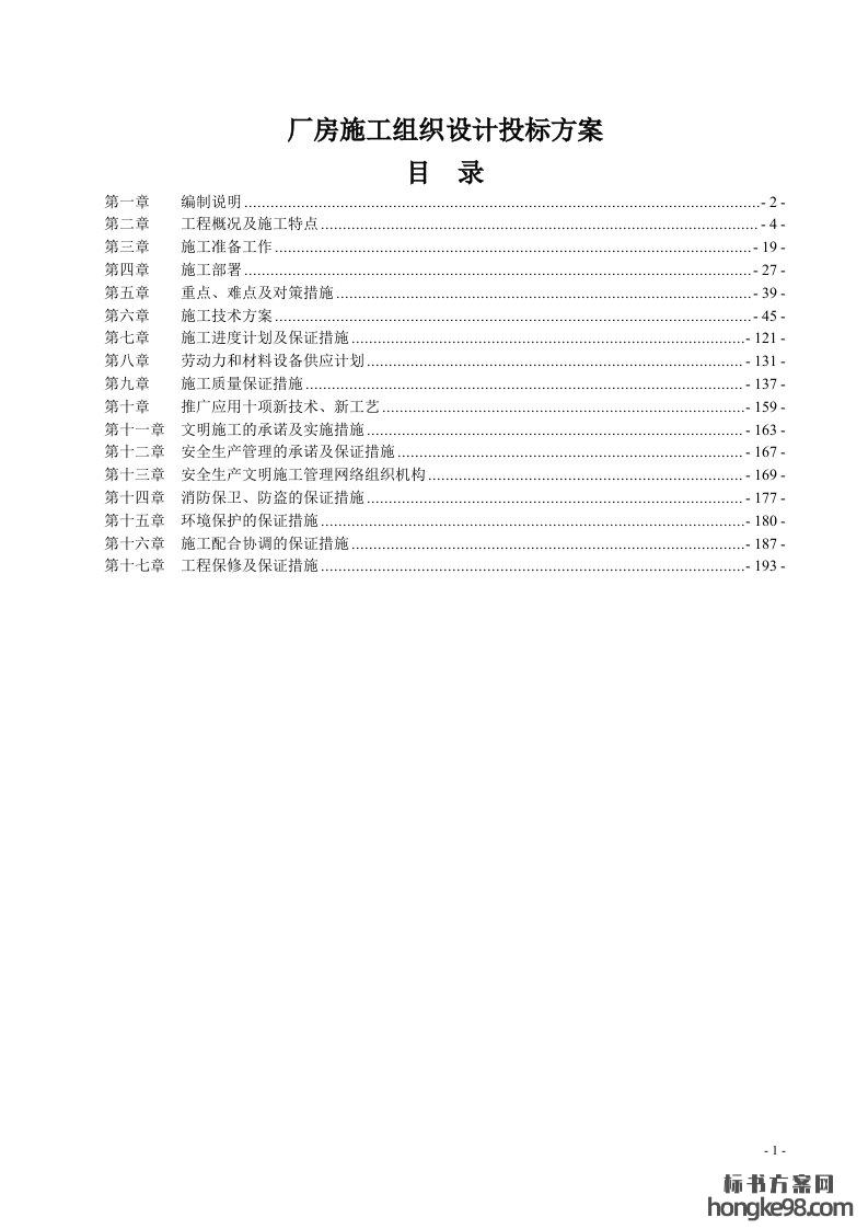 标题:厂房施工组织设计标书投标方案(199页)