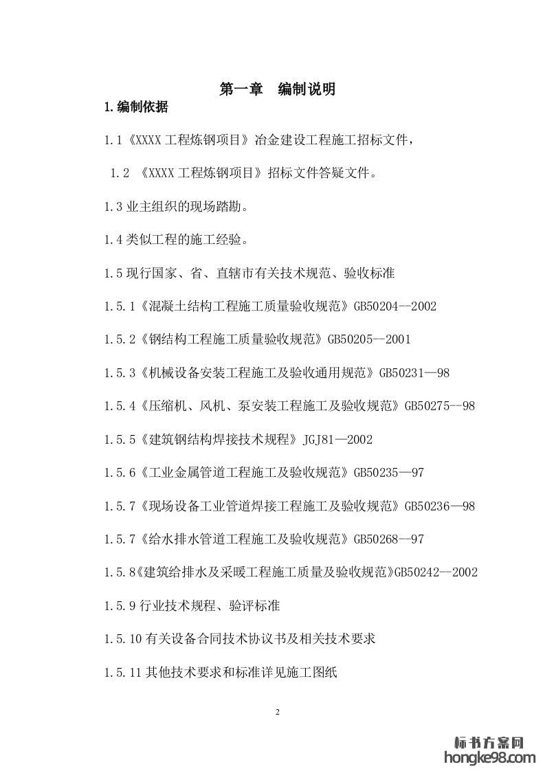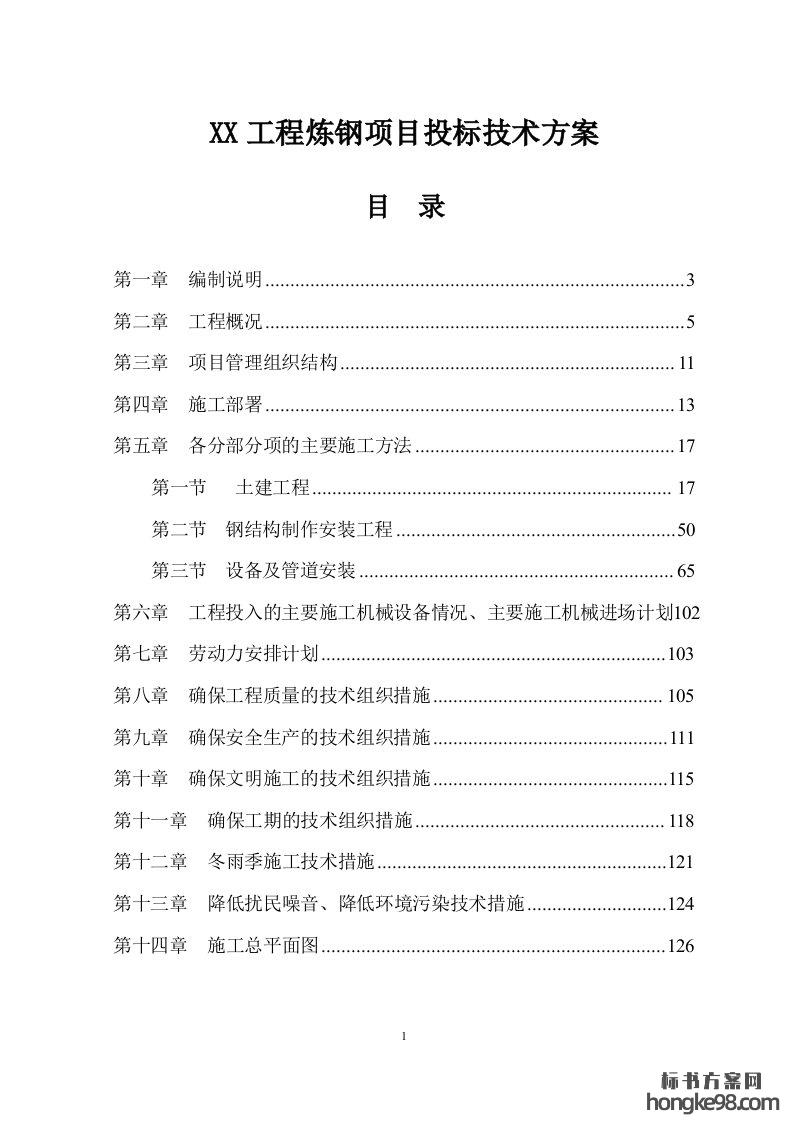 标题:某工程炼钢项目标书投标技术方案(129页)