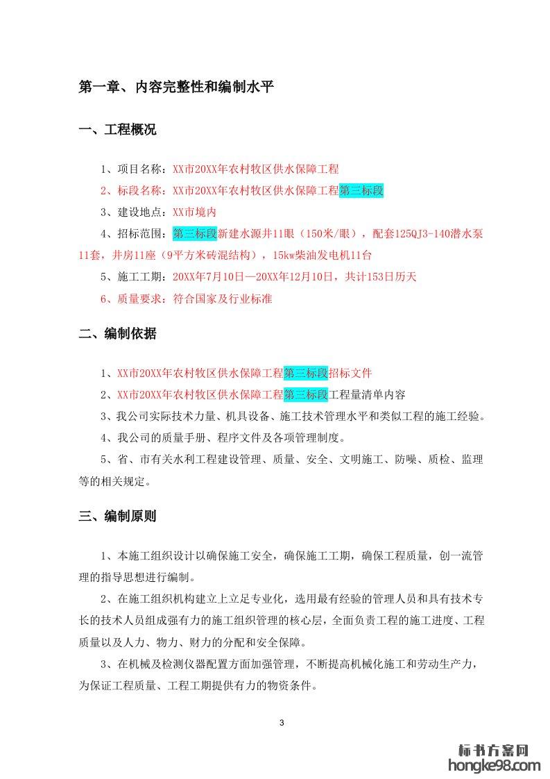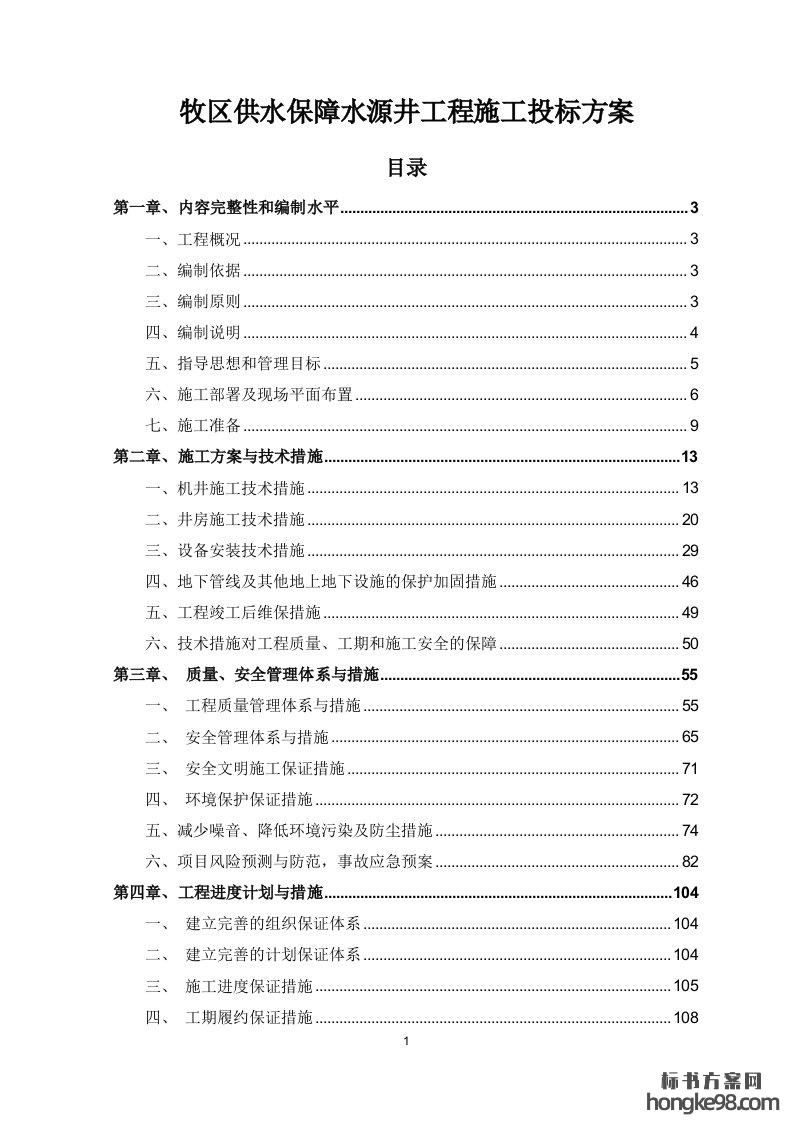 标题:牧区供水保障水源井工程施工标书投标方案(182页)