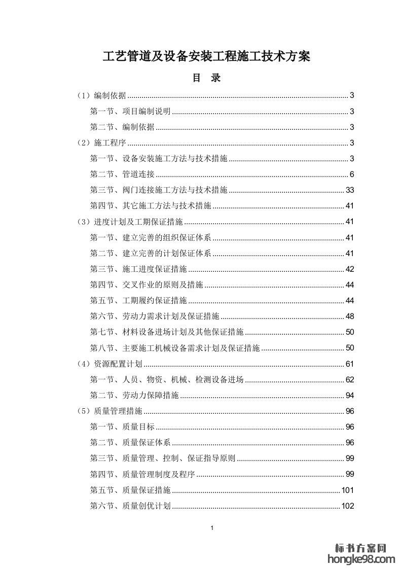 标题:工艺管道及设备安装工程施工技术方案(184页)