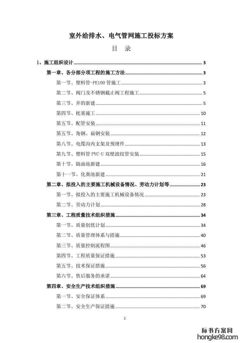 标题:室外给排水、电气管网施工标书投标方案(142页)