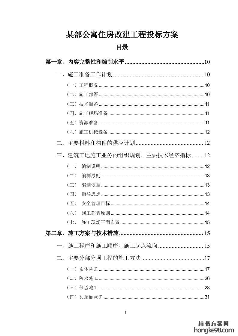 标题:某部公寓住房改建工程标书投标方案(296页)