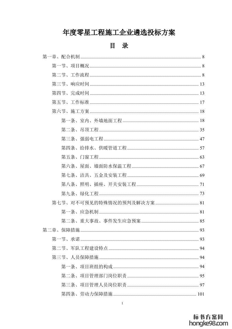 标题:零星工程施工企业遴选标书投标方案(218页)